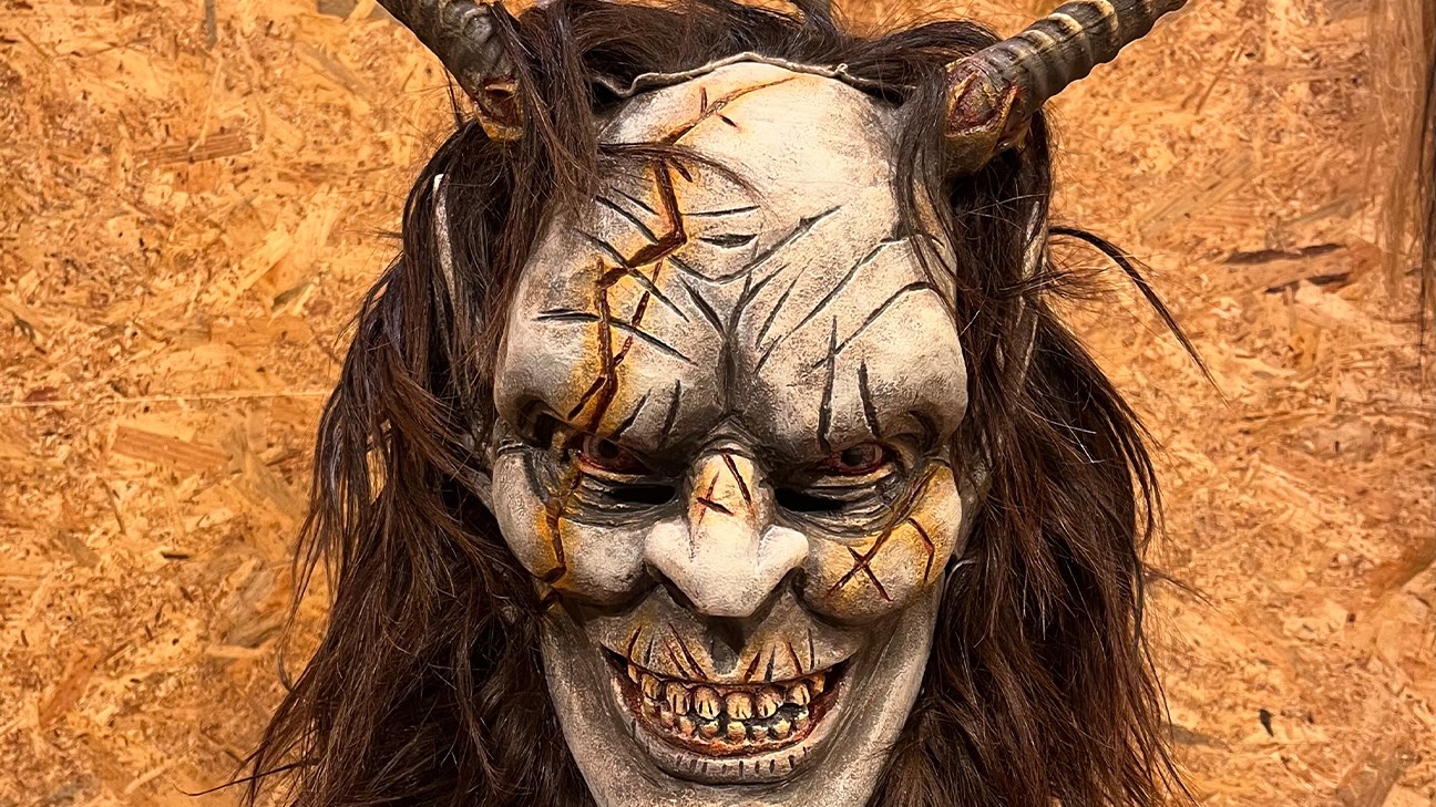 Im Blaahaus zeigt er eine breite Auswahl seiner Masken aus vielen Jahren Schnitzkunst. Außerdem zeigen wir ganze Perchten.