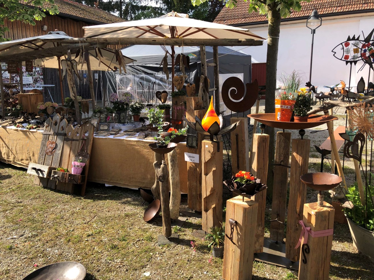Kunst&Garten - der Frühlingsmarkt im Trachtenkulturzentrum Holzhausen. Aussteller mit Kunstwerken für den Garten bis zu den Pflanzen für Ihre Beete.