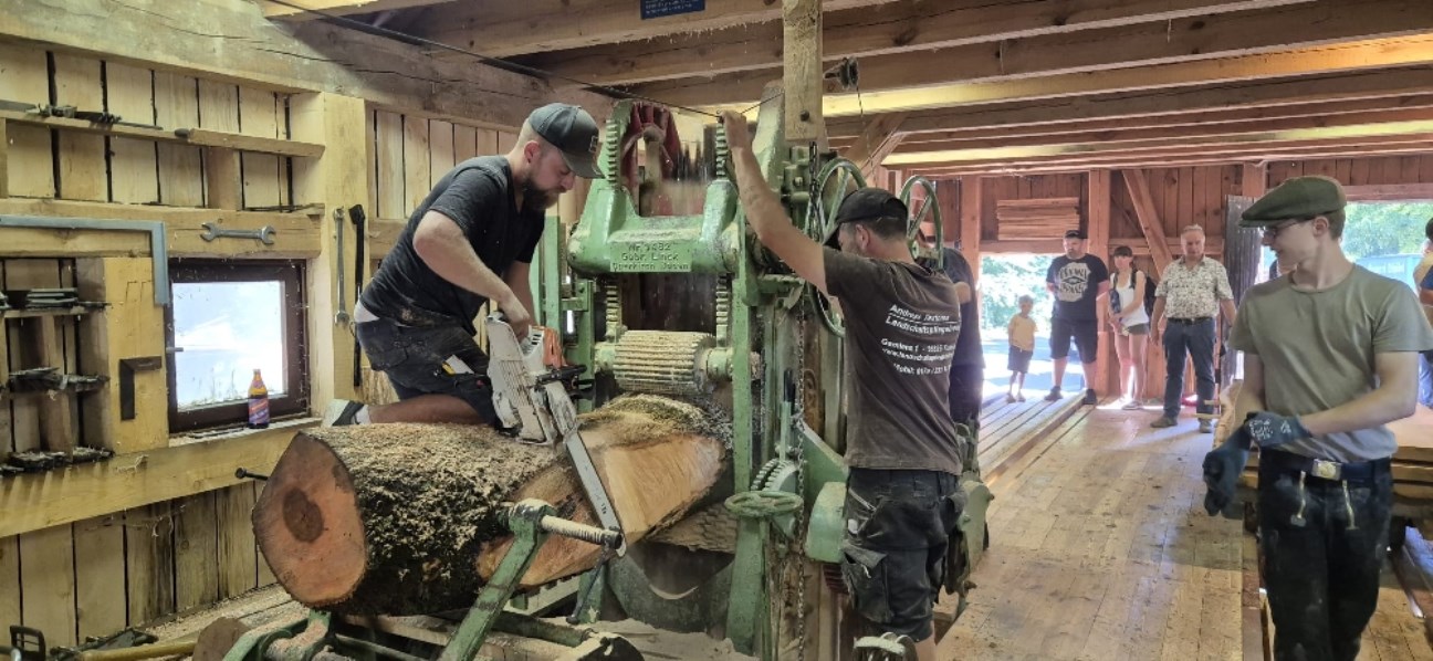 Hier fliegen die Späne: Beim Sägen an der Schneidmühle wird alte Handwerkskunst wieder lebendig. Freuen Sie sich auf spannende Einblicke, echtes Können und ein Stück gelebte Tradition im Rahmen der 875-Jahr-Feier. Ein Programmpunkt mit Geschichte, Herz und ordentlich Holz vor der Hütte.