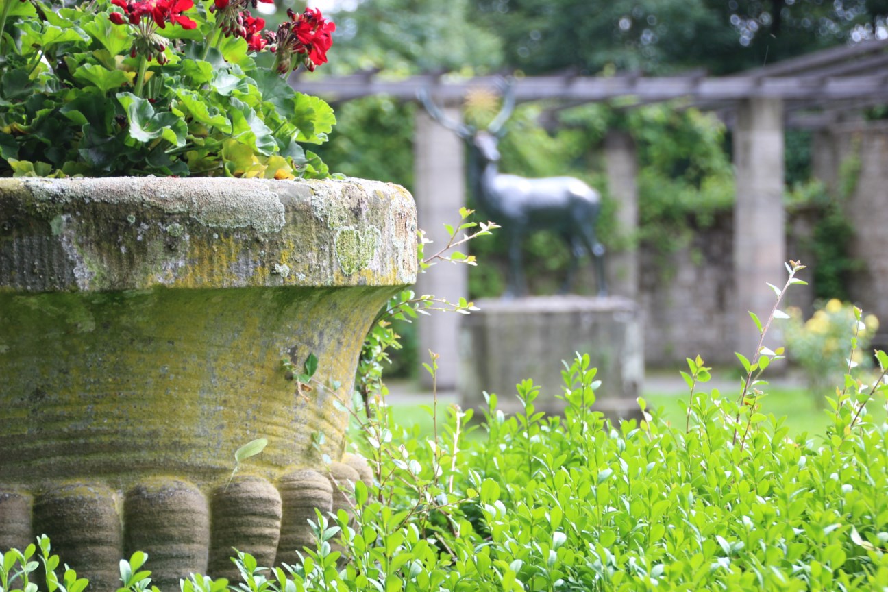 Der Park mit seinen Skulpturen, Teichen und Alleen ist ein bedeutendes Gartendenkmal aus dem frühen zwanzigsten Jahrhundert. Schlossparkführerin Marion Hofmann freut sich auf Sie!