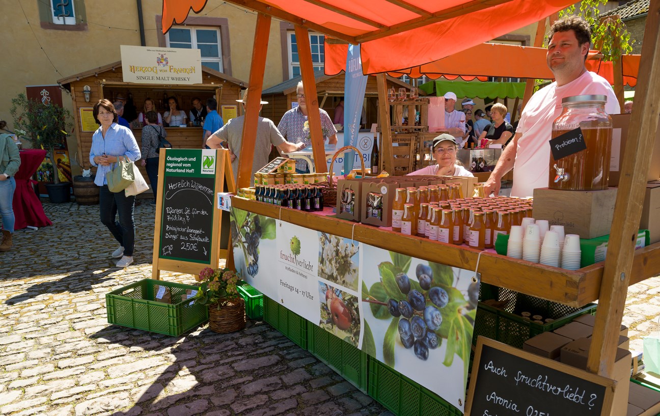 Genussmarkt MainWerntal im Schafhof des Schlosses Thüngen mit freiem Eintritt, regionalen Produkten, handwerklichen Erzeugnissen und kulinarischen Angeboten