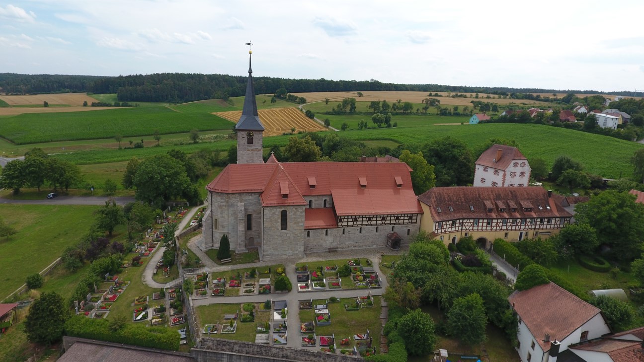 Im Landkreis Kitzingen lassen sich viele Kirchenburgen entdecken. Wir fahren entlang des Wassers zu Mühlen ebenso in Mitten von Weinberganlagen.