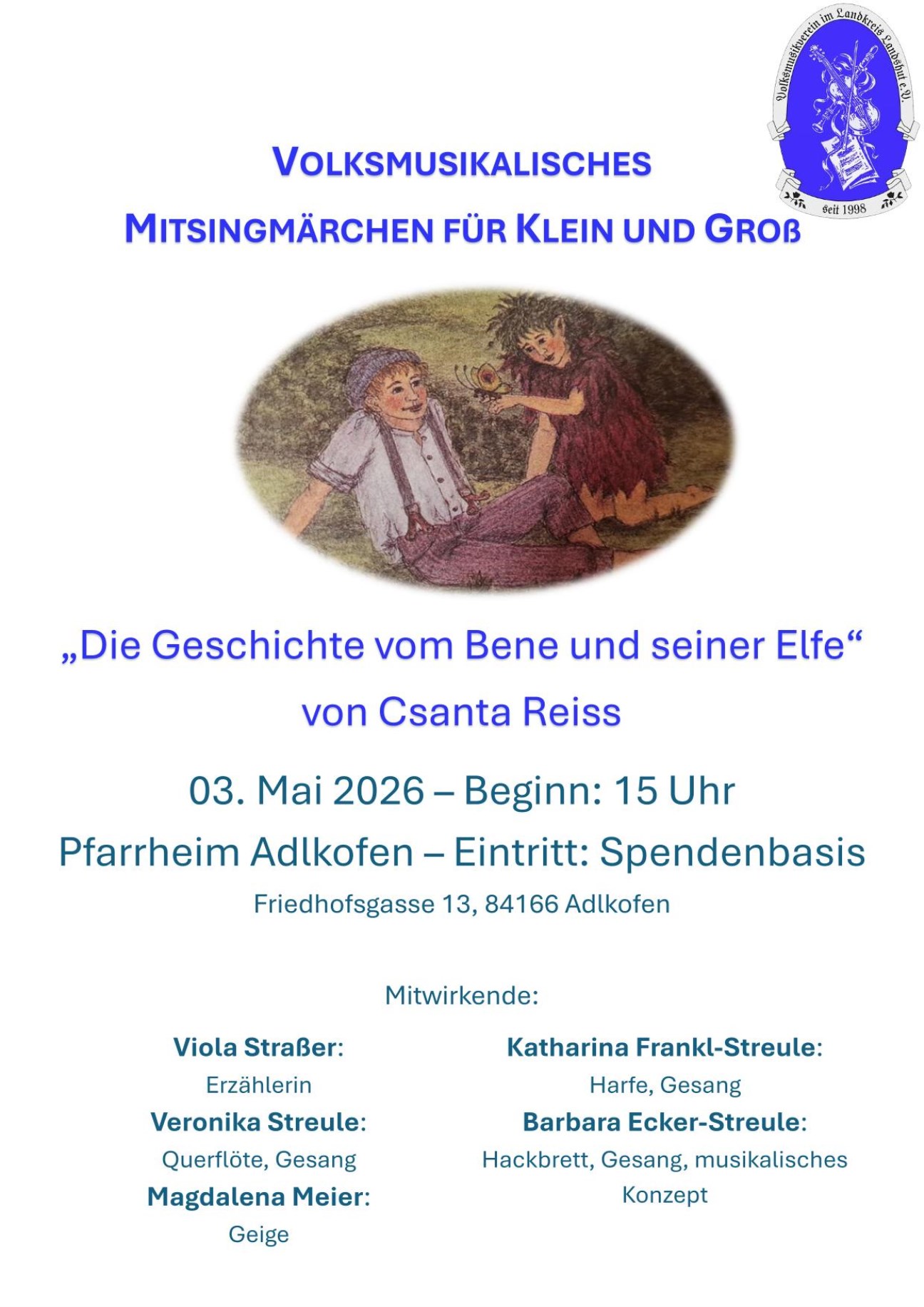 Ein volksmusikalisches Mitsingmärchen für Klein und Groß mit Livemusik und -erzählerin.